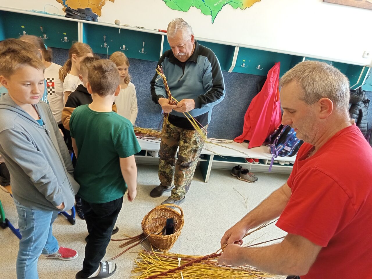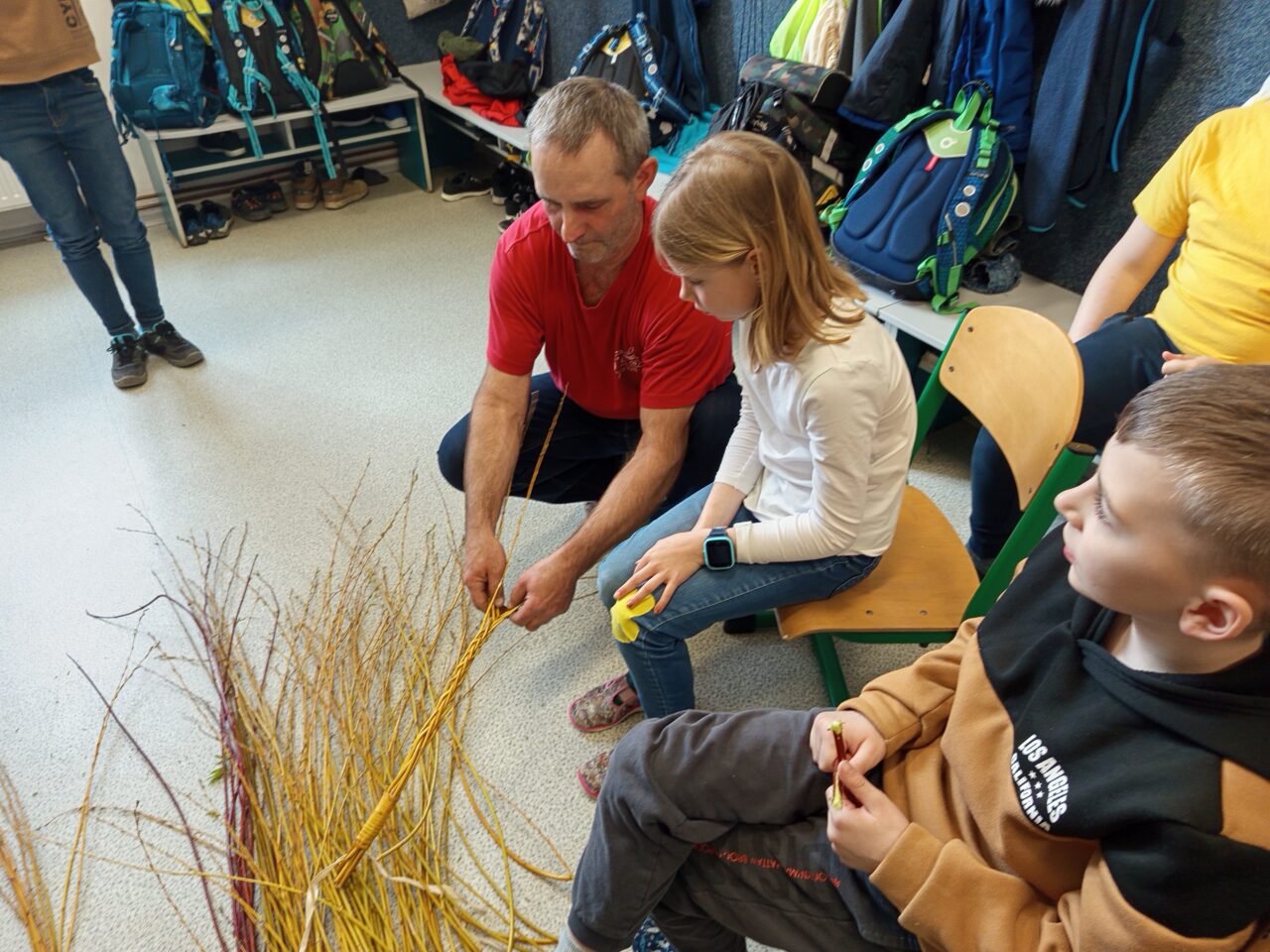 Ve čtvrtek 10. dubna za námi do školní družiny přišli pánové Jan Tkáč a Martin Kinnert, aby nám ukázali, jak se plete karabáč. Zájemci si pak mohli sami vyzkoušet pomlázku uplést. A nebylo to vůbec jednoduché. Proutky se pletly pátý přes devátý, ale zkušení pánové si s tím poradili a dětem pomohli. Tatar si si odnesli nejen někteří kluci, ale i děvčata.