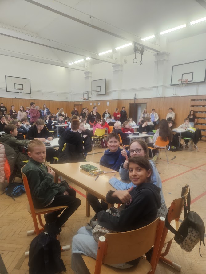 Dne 28. 3. 2025 se naše čtyřčlenné družstvo ve složení Nelča, Klárka, Niki a Jonda zúčastnilo soutěže Funny English Day, pořádané ZŠ Vrchní v Opavě. Z dvaceti sedmi zúčastněných družstev naši žáci obsadili krásnou jedenáctou příčku. Jak sami pořadatelé uvedli, rok od roku se náročnost soutěže zvyšuje, a proto všem našim borcům patří obrovská „CONGRATULATION".