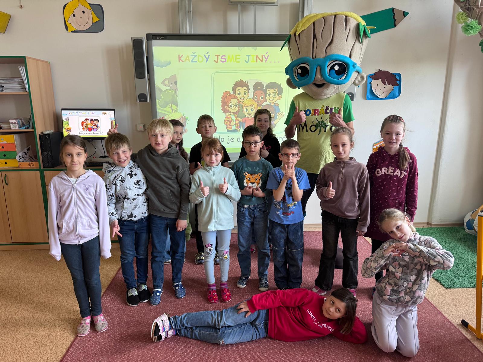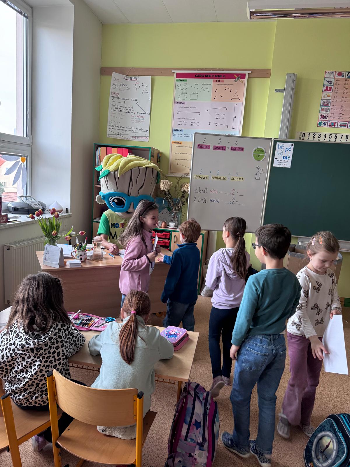 V pondělí 20.4. si za našimi žáky přišel povídat maskot Mojráček. Společně s paní